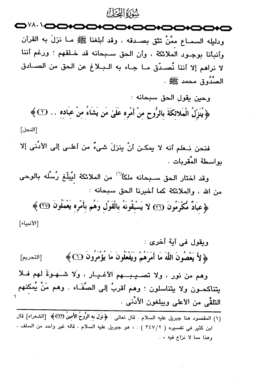 ودليله السماع مِمَّنْ تثق بصدقه، وقد أبلغنا صَلَّى اللَّهُ عَلَيْهِ وَسَلَّم َ ما نزلَ به القرآن وأنبأنا بوجود الملائكة، وأن الحق سبحانه قد خلقهم؛ ورغم أننا لا نراهم إلا أننا نُصدِّق ما جاء به البلاغ عن الحق من الصادق الصَّدُوق محمد صَلَّى اللَّهُ عَلَيْهِ وَسَلَّم َ.