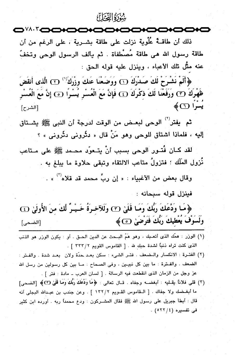 فينزل قوله سبحانه: {مَا وَدَّعَكَ رَبُّكَ وَمَا قلى وَلَلآخِرَةُ خَيْرٌ لَّكَ مِنَ الأولى وَلَسَوْفَ يُعْطِيكَ رَبُّكَ فترضى} [الضحى: 3 - 5] .
