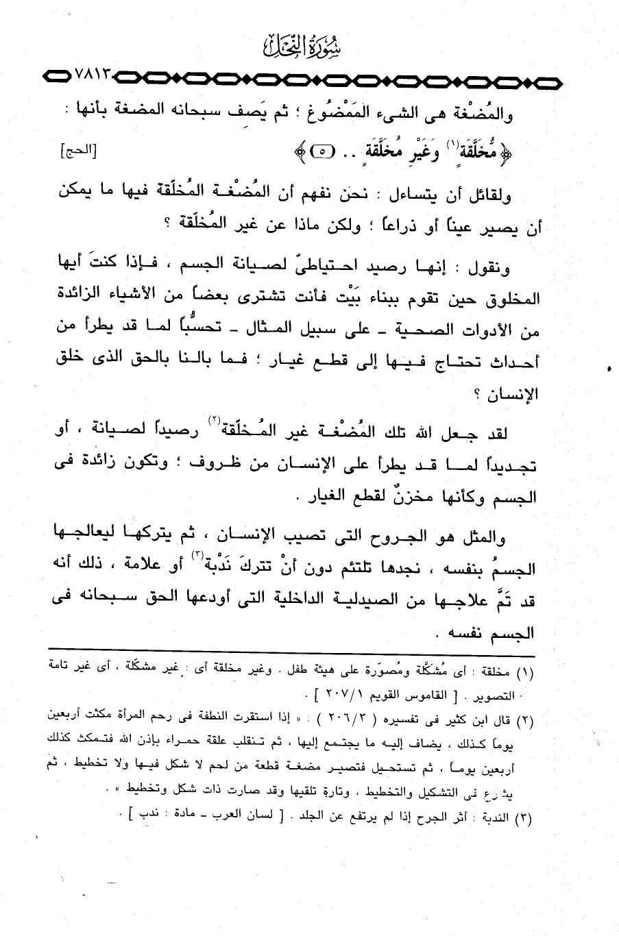 لقد جعل الله تلك المُضْغة غير المُخلَّقة رصيداً لصيانة، أو تجديداً لما قد يطرأ على الإنسان من ظروف؛ وتكون زائدة في الجسم وكأنها مخزنٌ لقطع الغيار.