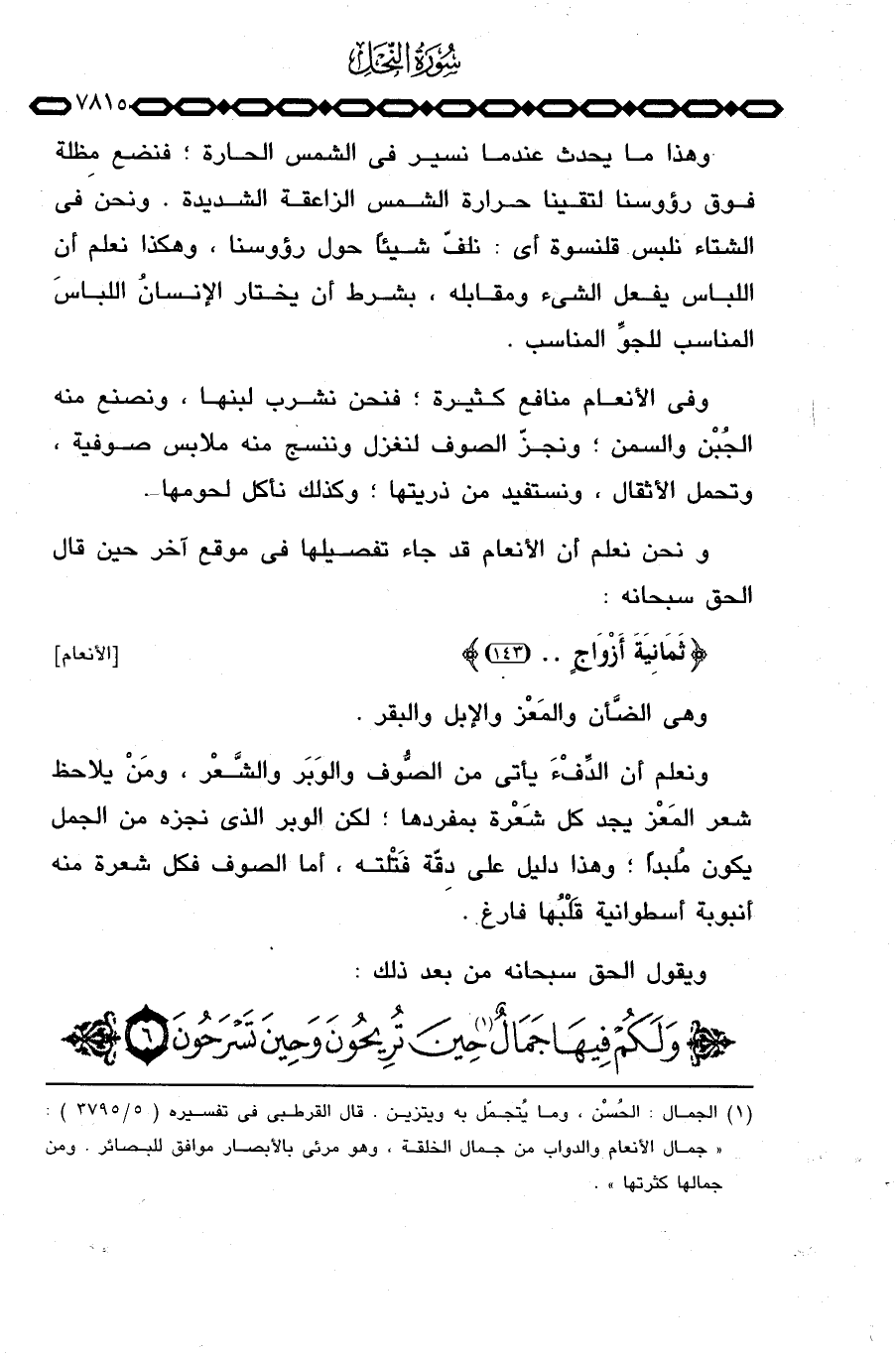 ويقول الحق سبحانه من بعد ذلك: {وَلَكُمْ فِيهَا جَمَالٌ ... } .