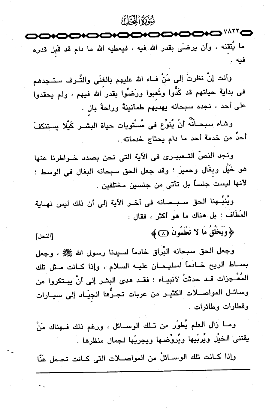 ونجد النصّ التعبيري في الآية التي نحن بصدد خواطرنا عنها هو خَيْل وبِغَال وحمير؛ وقد جعل الحق سبحانه البغال في الوسط؛ لأنها ليست جنساً بل تأتي من جنسين مختلفين.