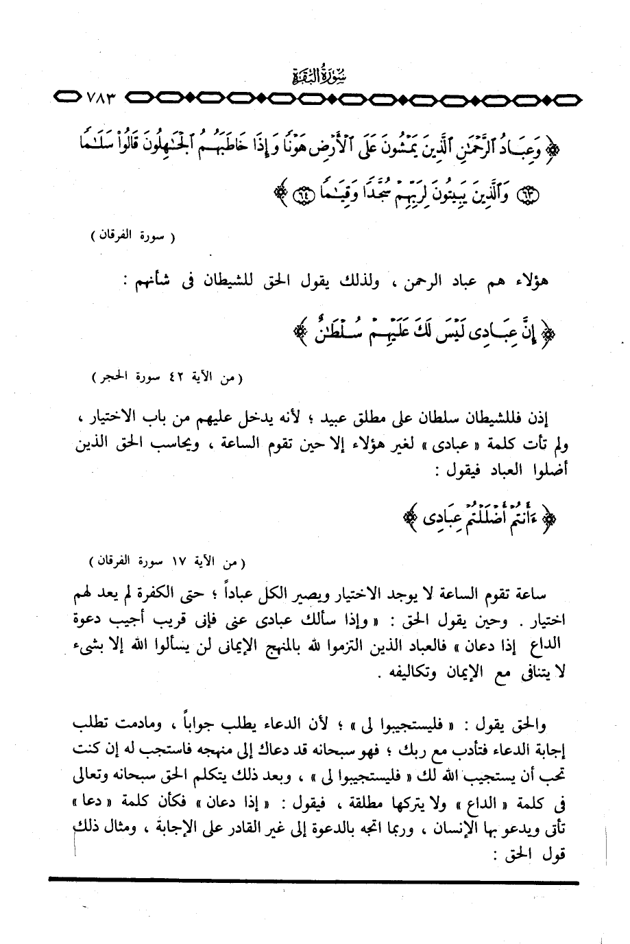 {وَعِبَادُ الرحمن الذين يَمْشُونَ على الأرض هَوْناً وَإِذَا خَاطَبَهُمُ الجَاهِلُونَ قَالُواْ سَلاَماً وَالَّذِينَ يِبِيتُونَ لِرَبِّهِمْ سُجَّداً وَقِيَاماً} [الفرقان: 63 - 64]