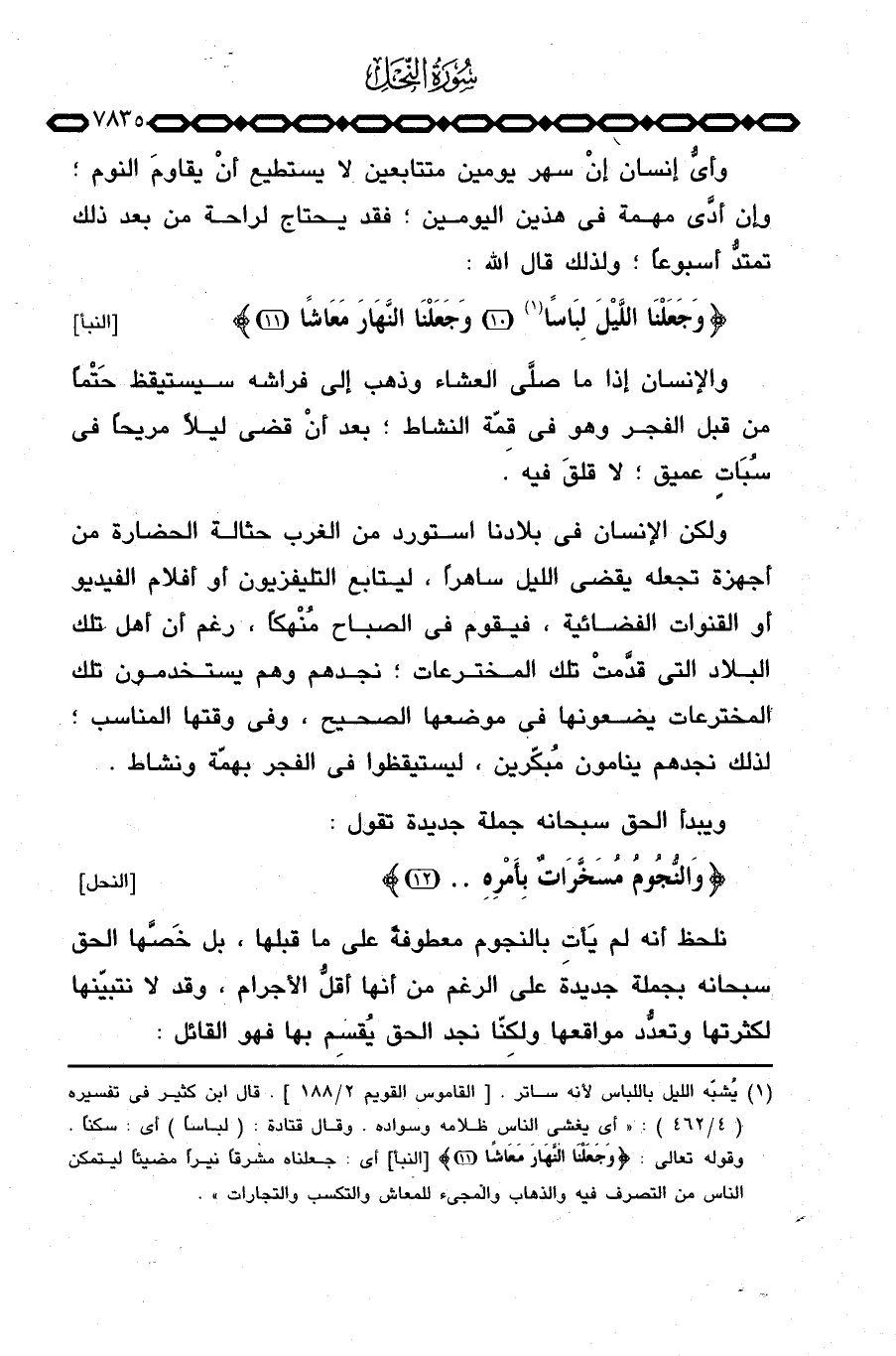 وأيُّ إنسان إنْ سهر يومين متتابعين لا يستطيع أنْ يقاومَ النوم؛ وإن أدَّى مهمة في هذين اليومين؛ فقد يحتاج لراحة من بعد ذلك تمتدُّ أسبوعاً؛ ولذلك قال الله: {وَجَعَلْنَا اليل لِبَاساً وَجَعَلْنَا النهار مَعَاشاً} [النبأ: 10 - 11] .