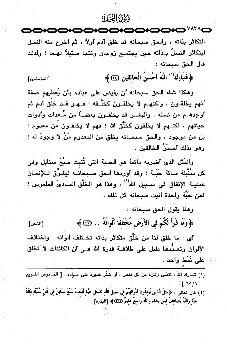وهكذا شاء الحق سبحانه أن يفيض على عباده بأن يُعطِيهم صفة أنهم يخلقون، ولكنهم لا يخلقون كخَلْقه؛ فهو قد خلق آدم ثم أوجدهم من نسله. والبشر قد يخلقون بعضاً من مُعِدات وأدوات حياتهم، لكنهم لا يخلقون كخَلْق الله؛ فهم لا يخلقون من معدوم؛ بل من موجود، والحق سبحانه يخلق من المعدوم مَنْ لا وجود له؛ وهو بذلك أحسَنُ الخالقين.