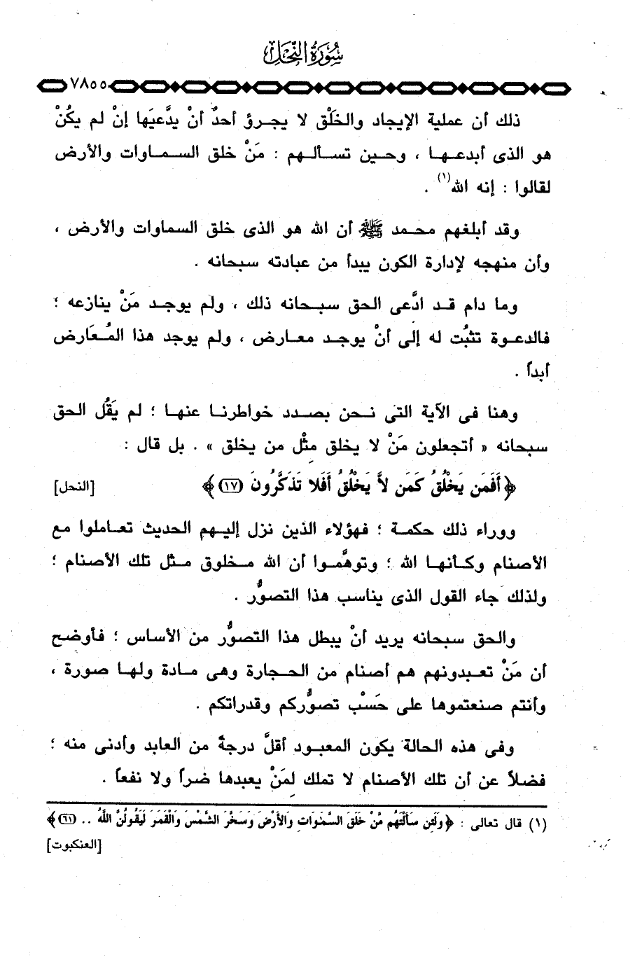 {أَفَمَن يَخْلُقُ كَمَن لاَّ يَخْلُقُ أَفَلا تَذَكَّرُونَ} [النحل: 17] .