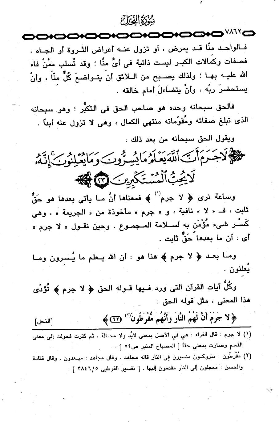 وكُلُّ آيات القرآن التي ورد فيها قوله الحق {لاَ جَرَمَ} تُؤدِّي هذا المعنى، مثل قوله الحق: {لاَ جَرَمَ أَنَّ لَهُمُ النار وَأَنَّهُمْ مُّفْرَطُونَ} [النحل: 62] .