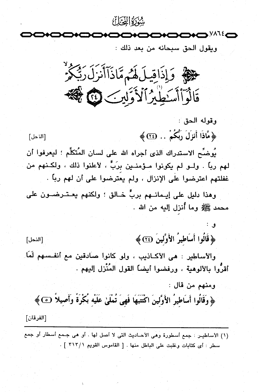 {قَالُواْ أَسَاطِيرُ الأولين} [النحل: 24] .