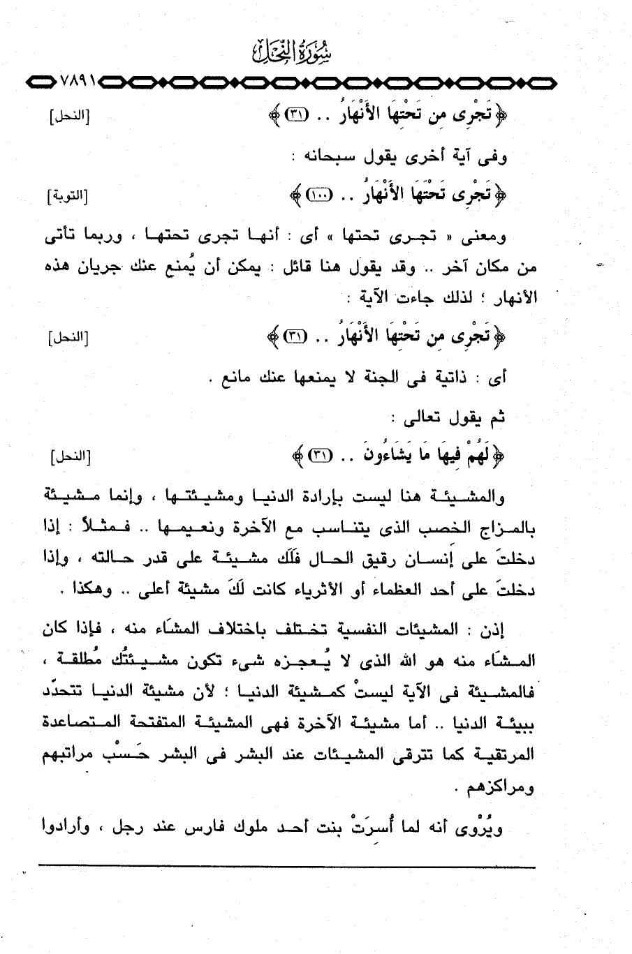 {تَجْرِي مِن تَحْتِهَا الأنهار} [النحل: 31] .