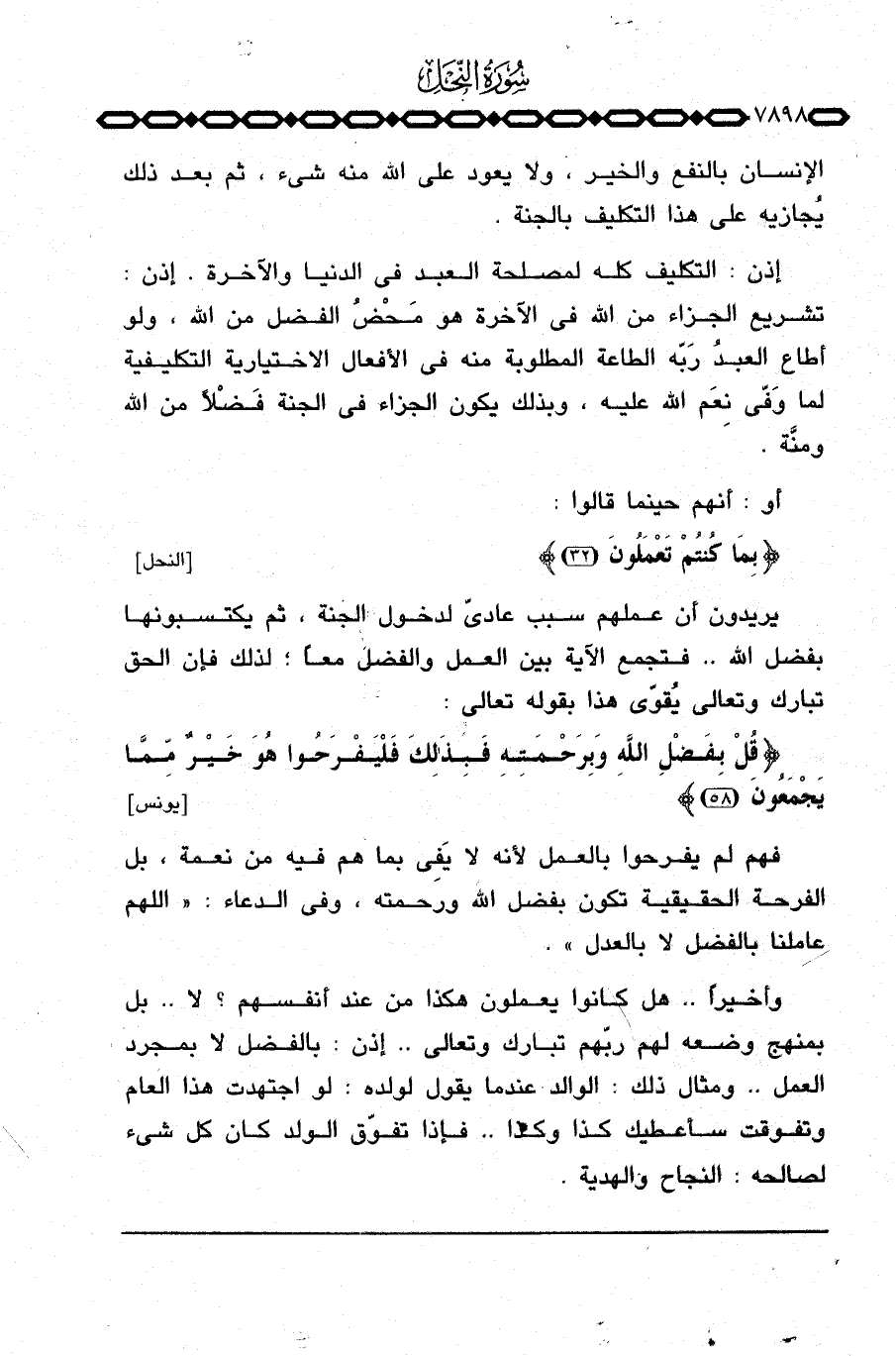 فهم لم يفرحوا بالعمل لأنه لا يَفِي بما هم فيه من نعمة، بل الفرحة الحقيقية تكون بفضل الله ورحمته، وفي الدعاء: «اللهم عاملنا بالفضل لا بالعدل» .
