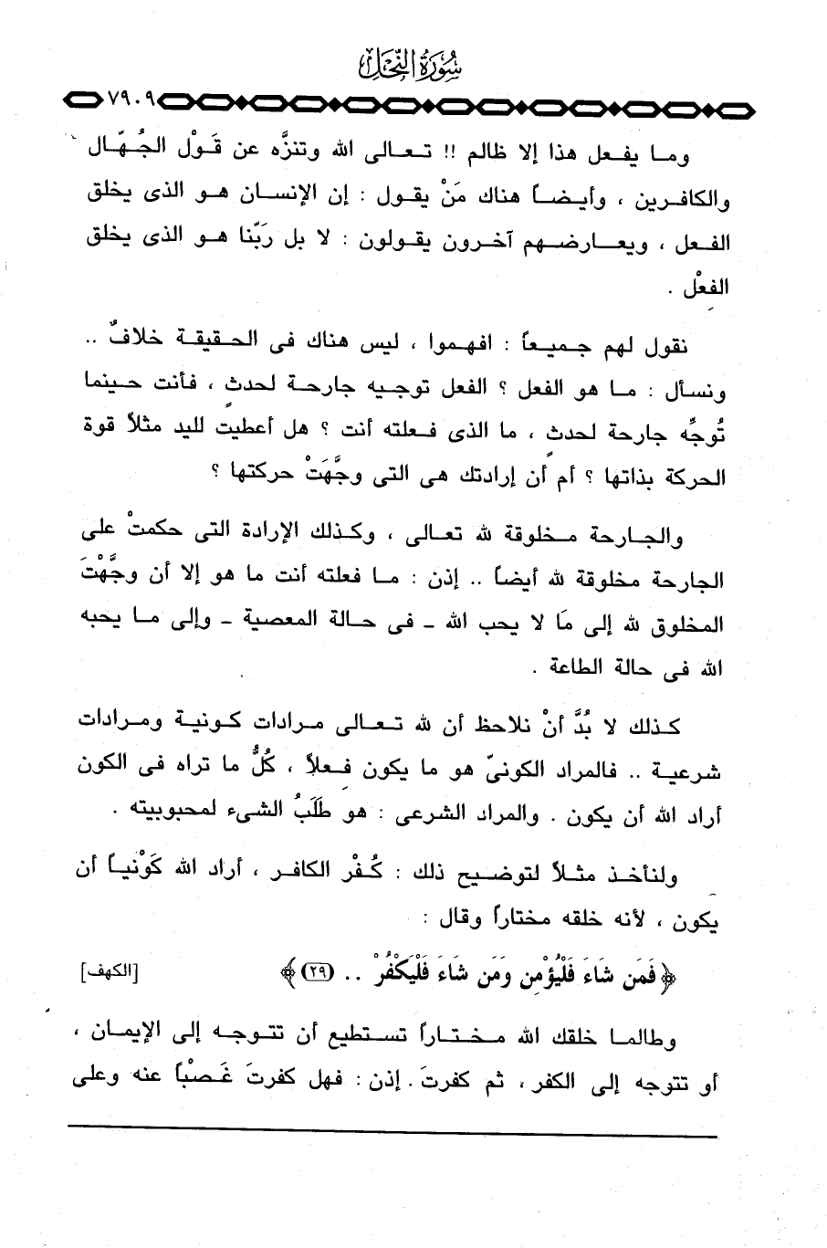 نقول لهم جميعاً: افهموا، ليس هناك في الحقيقة خلافٌ. . ونسأل: ما هو الفعل؟ الفعل توجيه جارحة لحدثٍ، فأنت حينما تُوجِّه جارحة لحدثٍ، ما الذي فعلته أنت؟ هل أعطيتَ لليد مثلاً قوة الحركة بذاتها؟ أم أن إرادتك هي التي وجَّهَتْ حركتها؟