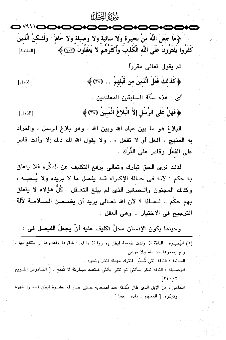 {مَا جَعَلَ الله مِن بَحِيرَةٍ وَلاَ سَآئِبَةٍ وَلاَ وَصِيلَةٍ وَلاَ حَامٍ ولكن الذين كَفَرُواْ يَفْتَرُونَ على الله الكذب وَأَكْثَرُهُمْ لاَ يَعْقِلُونَ} [المائدة: 103] .