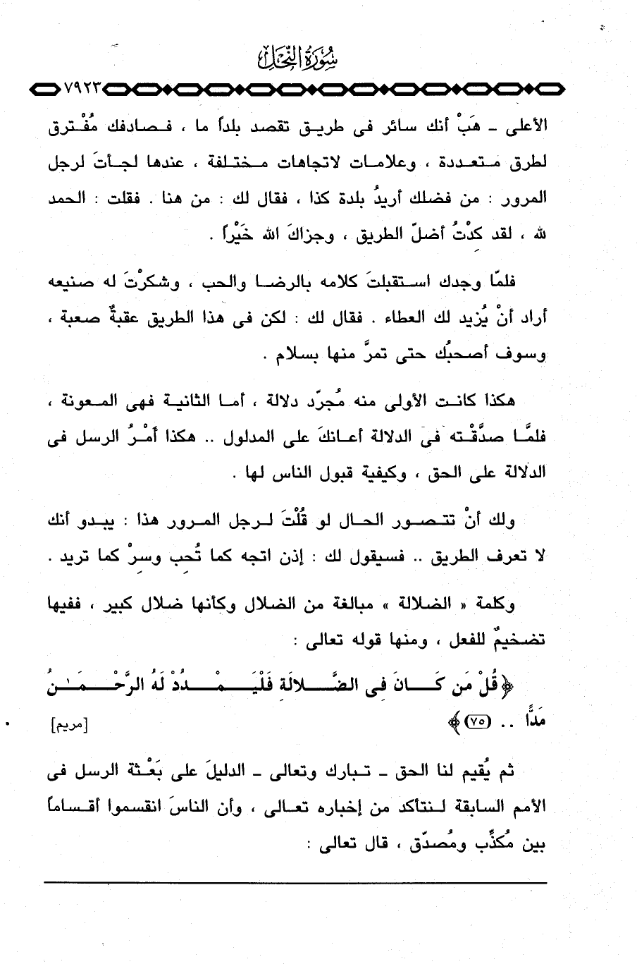 الأعلى هَبْ أنك سائر في طريق تقصد بلداً ما، فصادفك مُفْترق لطرق متعددة، وعلامات لاتجاهات مختلفة، عندها لجأتَ لرجل المرور: من فضل أريدُ بلدة كذا، فقال لك: من هنا. فقلت: الحمد لله، لقد كِدْتُ أضلَّ الطريق، وجزاكَ الله خيراً.