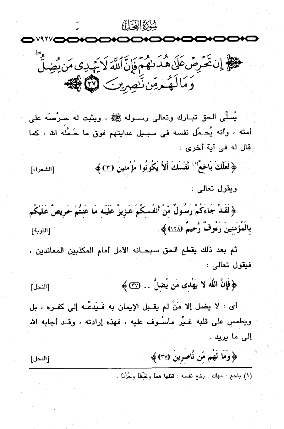 يُسلِّي الحق تبارك وتعالى رسوله صَلَّى اللَّهُ عَلَيْهِ وَسَلَّم َ، ويثبت له حِرْصَه على أمته، وأنه يُحمِّل نفسه في سبيل هدايتهم فوق ما حَمَّله الله، كما قال له في آية أخرى: {لَعَلَّكَ بَاخِعٌ نَّفْسَكَ أَلاَّ يَكُونُواْ مُؤْمِنِينَ} [الشعراء: 3] .