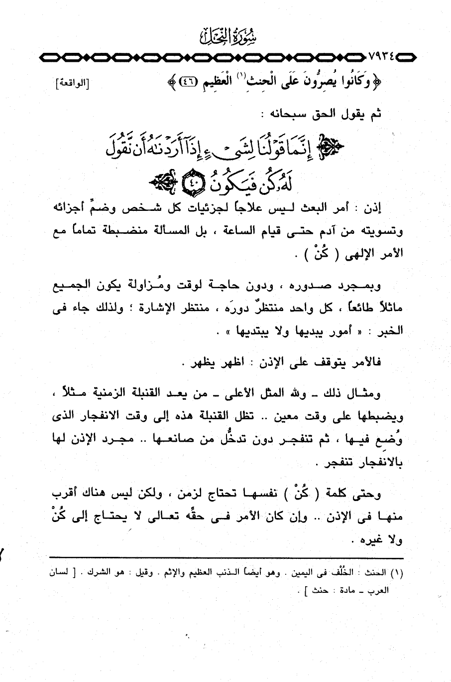 وحتى كلمة (كُنْ) نفسها تحتاج لزمن، ولكن ليس هناك أقرب منها في الإذن. . وإن كان الأمر في حقِّه تعالى لا يحتاج إلى كُنْ ولا غيره.