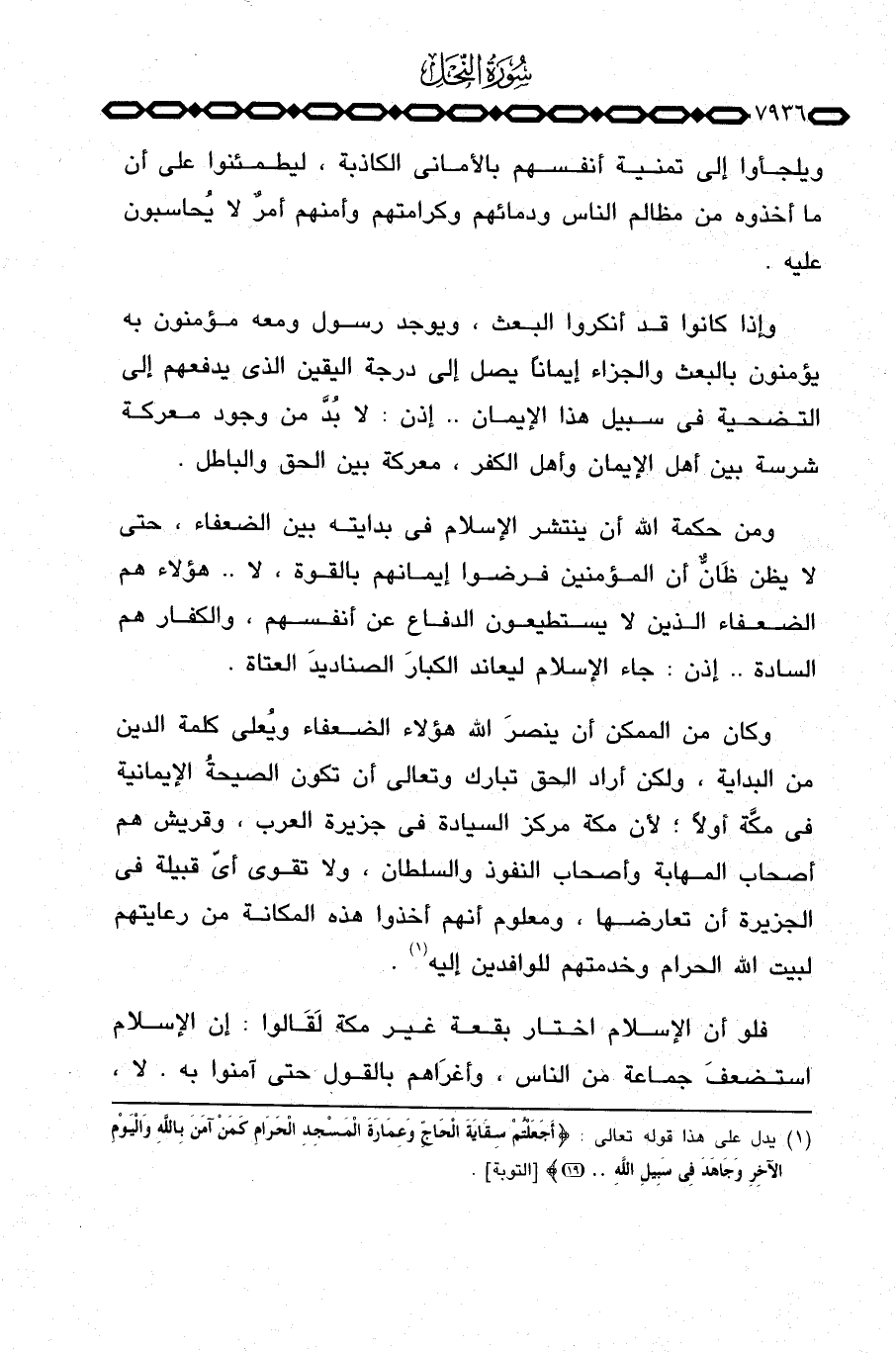 وكان من الممكن أن ينصرَ الله هؤلاء الضعفاء ويُعلي كلمة الدين من البداية، ولكن أراد الحق تبارك وتعالى أن تكون الصيحةُ الإيمانية في مكَّة أولاً؛ لأن مكة مركز السيادة في جزيرة العرب، وقريش هم أصحاب المهابة وأصحاب النفوذ والسلطان، ولا تقوى أيَّ قبيلة في الجزيرة أن تعارضها، ومعلوم أنهم أخذوا هذه المكانة من رعايتهم لبيت الله الحرام وخدمتهم للوافدين إليه.