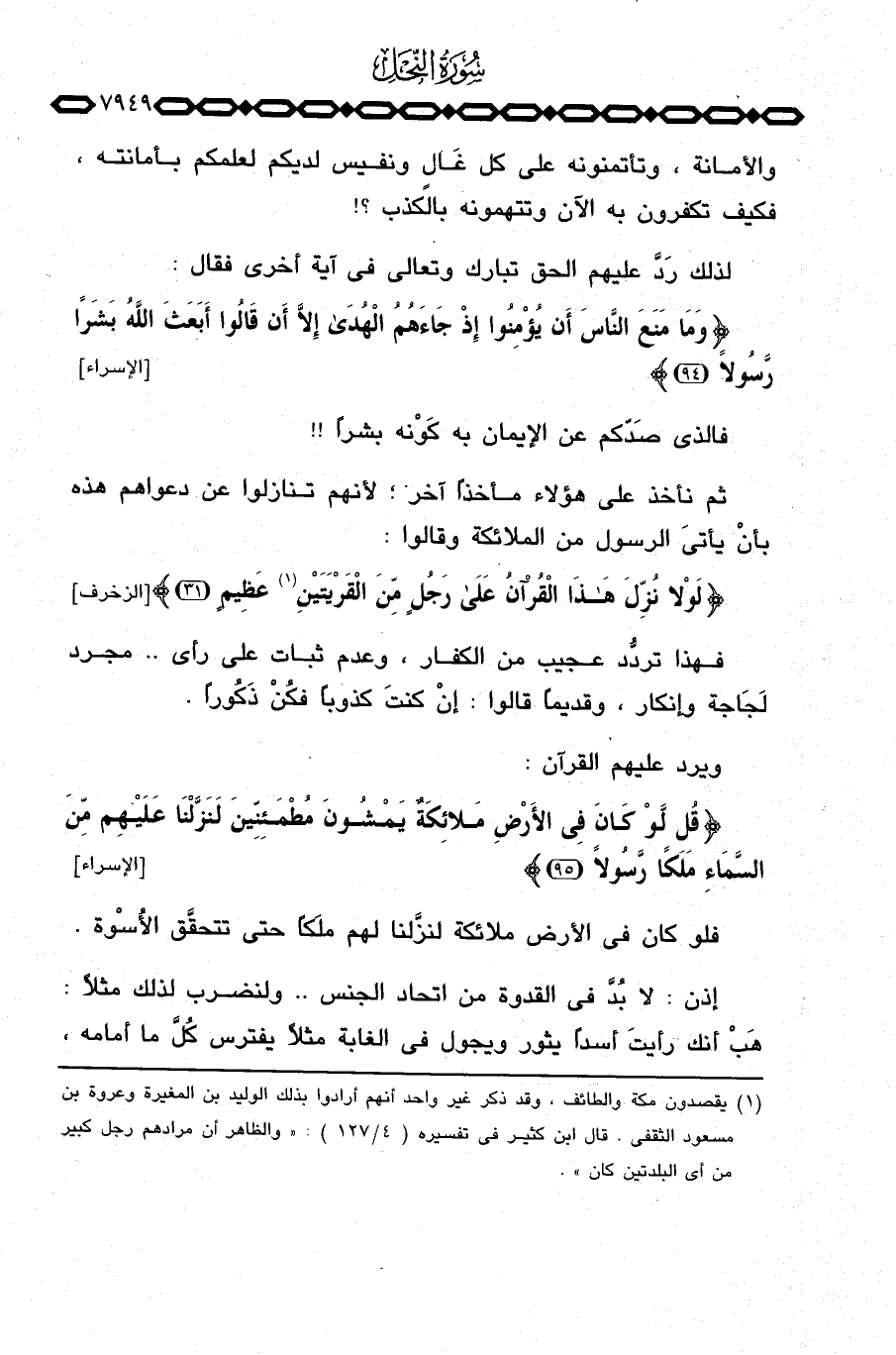 ويرد عليهم القرآن: {قُل لَوْ كَانَ فِي الأرض ملائكة يَمْشُونَ مُطْمَئِنِّينَ لَنَزَّلْنَا عَلَيْهِم مِّنَ السمآء مَلَكاً رَّسُولاً} [الإسراء: 95] .
