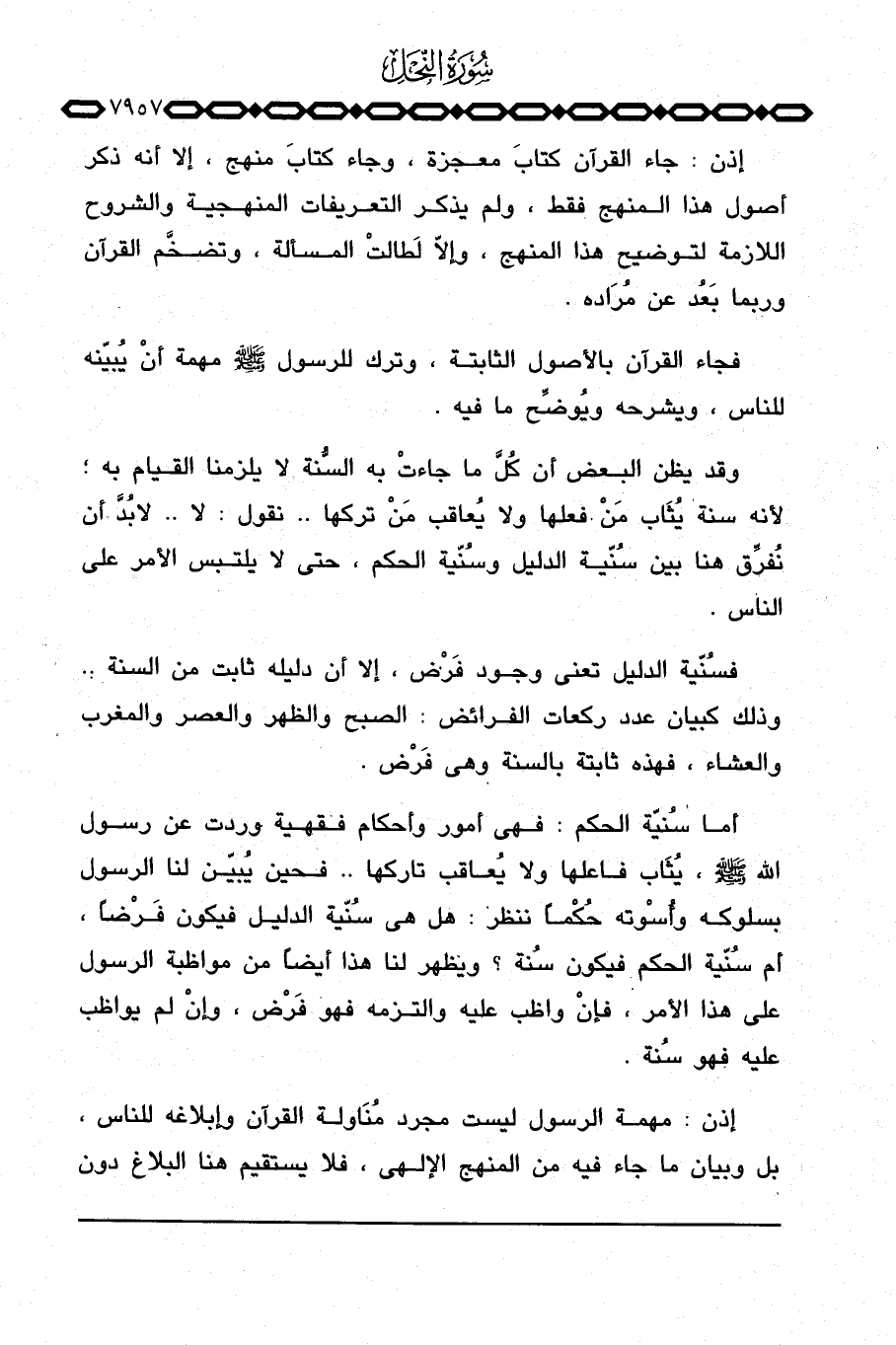 فجاء القرآن بالأصول الثابتة، وترك للرسول صَلَّى اللَّهُ عَلَيْهِ وَسَلَّم َ مهمة أنْ يُبيِّنه للناس، ويشرحه ويُوضِّح ما فيه.