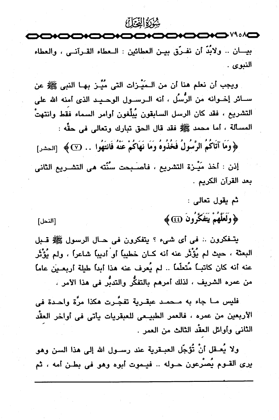 بيان. . ولا بُدَّ أن نفرّق بين العطائين: العطاء القرآني، والعطاء النبوي.