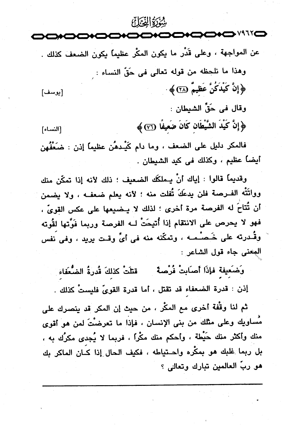 وقال في حَقِّ الشيطان: {إِنَّ كَيْدَ الشيطان كَانَ ضَعِيفاً} [النساء: 76] .