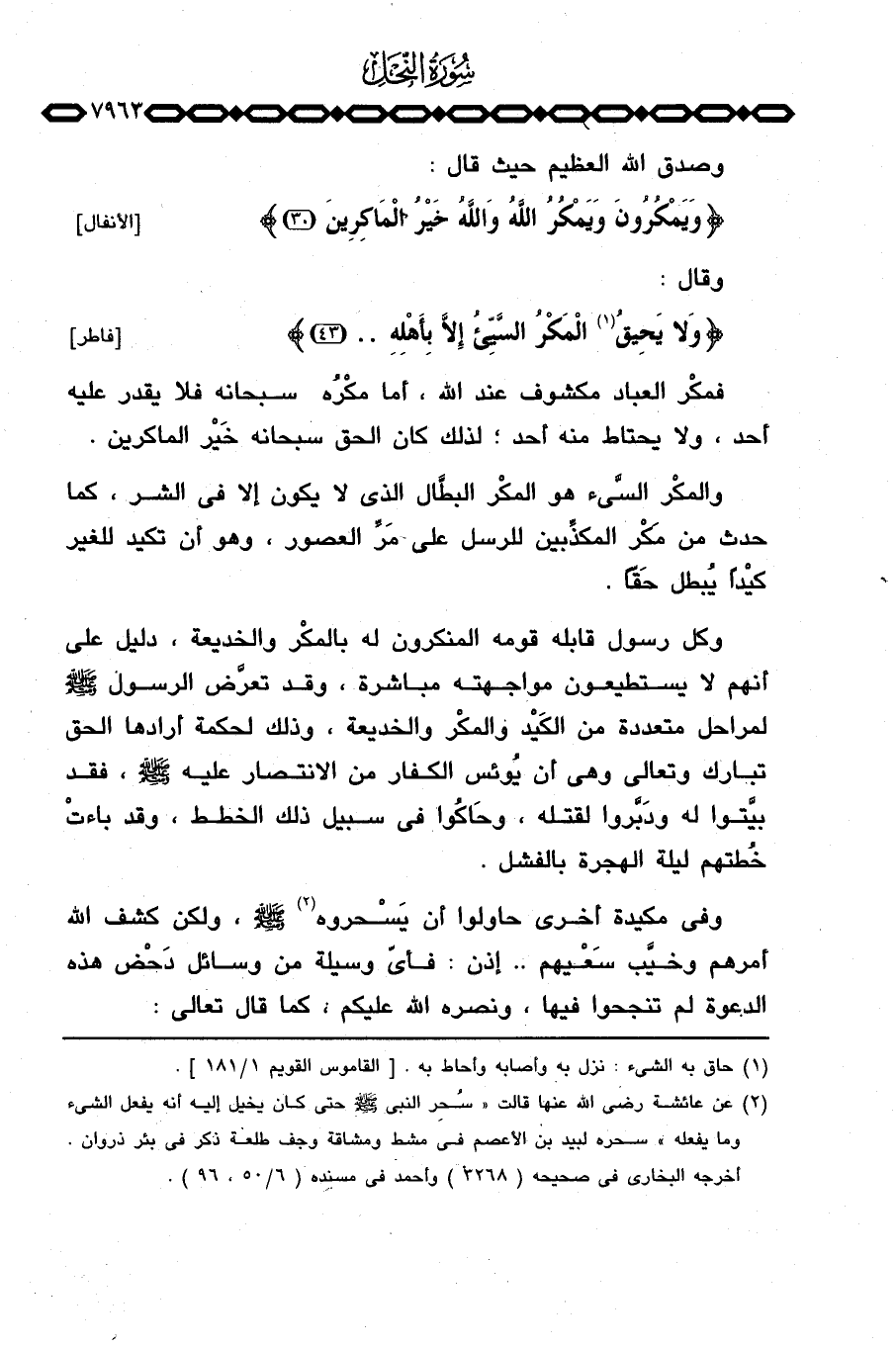 وكل رسول قابله قومه المنكرون له بالمكر والخديعة، دليل على أنهم لا يستطيعون مواجهته مباشرة، وقد تعرَّض الرسول صَلَّى اللَّهُ عَلَيْهِ وَسَلَّم َ لمراحل متعددة من الكَيْد والمكْر والخديعة، وذلك لحكمة أرادها الحق تبارك وتعالى وهي أن يُوئس الكفار من الانتصار عليه صَلَّى اللَّهُ عَلَيْهِ وَسَلَّم َ، فقد بيَّتوا له ودَبَّروا لقتله، وحَاكُوا في سبيل ذلك الخطط، وقد باءتْ خُطتهم ليلة الهجرة بالفشل.