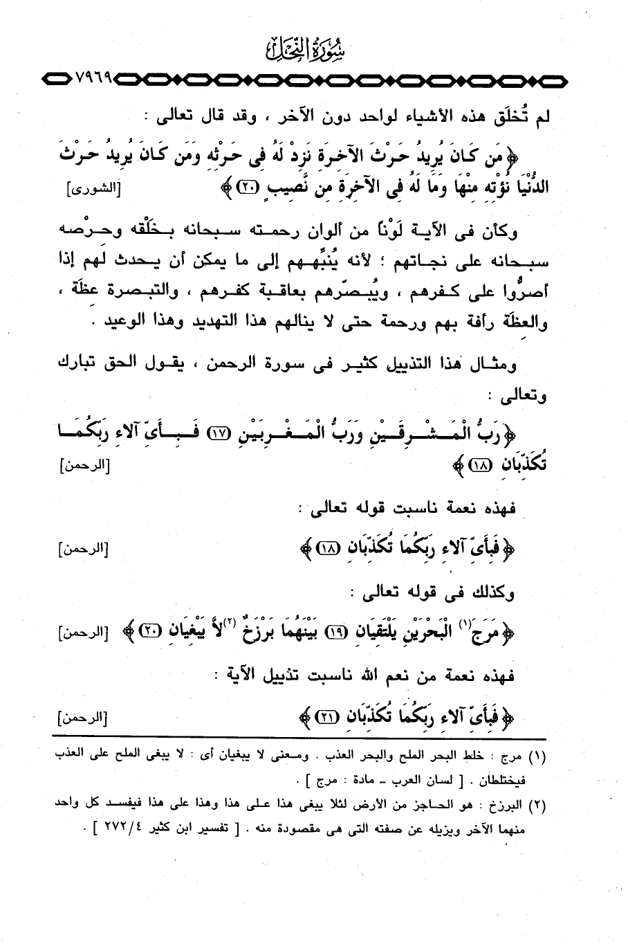 وكذلك في قوله تعالى: {مَرَجَ البحرين يَلْتَقِيَانِ بَيْنَهُمَا بَرْزَخٌ لاَّ يَبْغِيَانِ} [الرحمن: 19 - 20] .