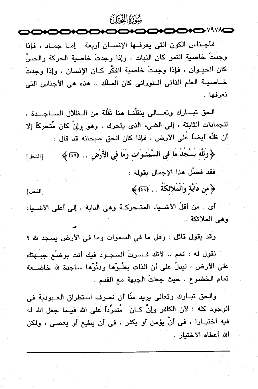 فأجناس الكون التي يعرفها الإنسان أربعة: إما جماد، فإذا وجدتَ خاصية النمو كان النبات، وإذا وجدتَ خاصية الحركة والحسِّ كان الحيوان، فإذا وجدتَ خاصية الفِكْر كان الإنسان، وإذا وجدتَ خاصية العلم الذاتي النوراني كان المَلَك. . هذه هي الأجناس التي نعرفها.