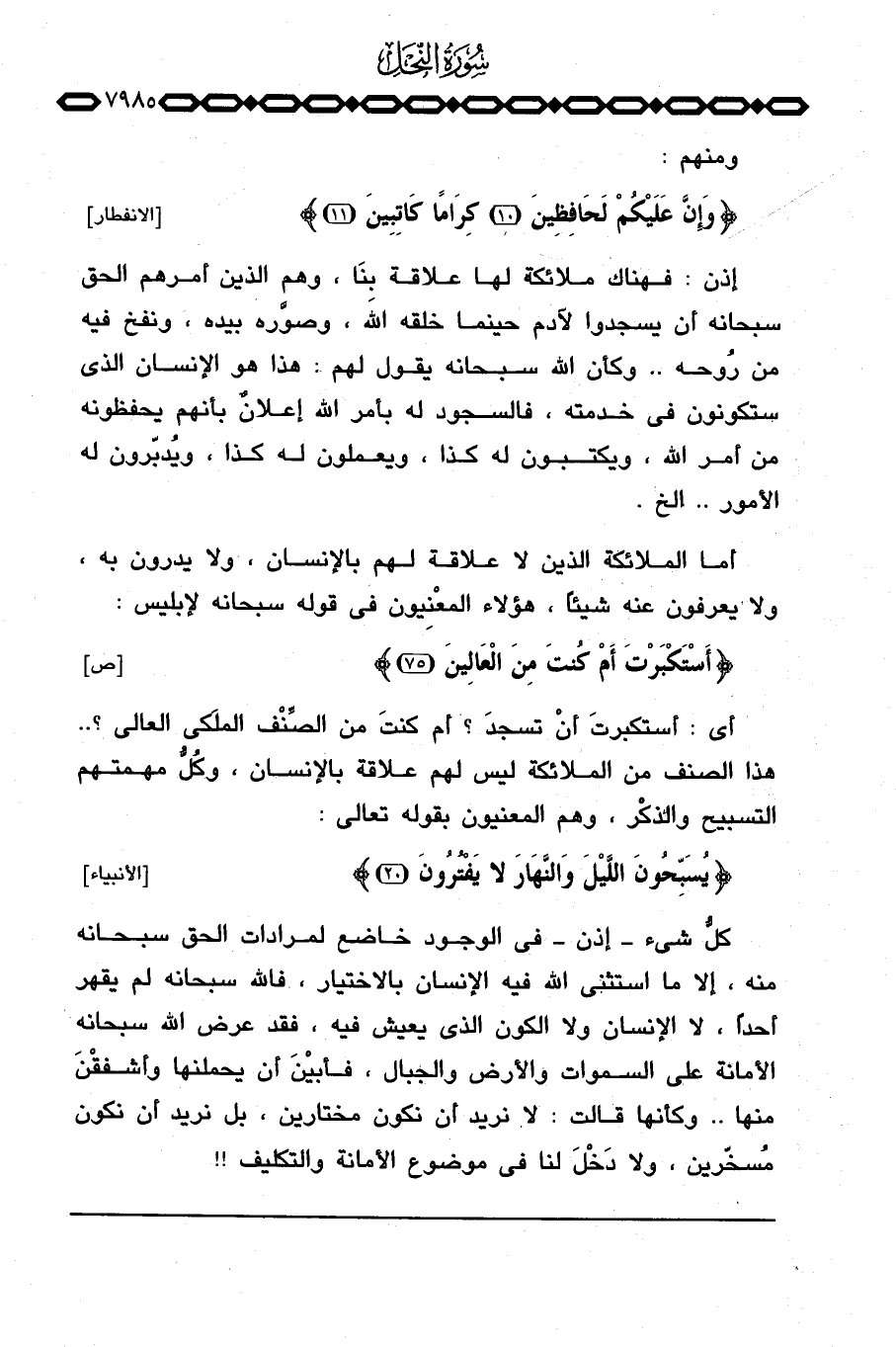 ومنهم: {وَإِنَّ عَلَيْكُمْ لَحَافِظِينَ كِرَاماً كَاتِبِينَ} [الانفطار: 10 - 11] .