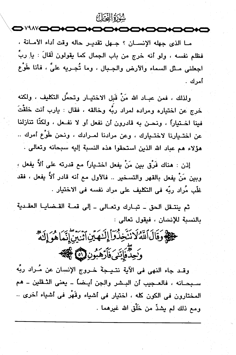ولذلك، فمن عباد الله مَنْ قَبِل الاختيار وتحمَّل التكليف، ولكنه خرج عن اختياره ومراده لمراد ربِّه وخالقه، فقال: يا رب أنت خلقْتَ فينا اختياراً، ونحن به قادرون أن نفعل أو لا نفعل، ولكنَّا تنازلنا عن اختيارنا لاختيارك، وعن مرادنا لمرادك، ونحن طَوْع أمرك. . هؤلاء هم عباد الله الذين استحقوا هذه النسبة إليه سبحانه وتعالى.