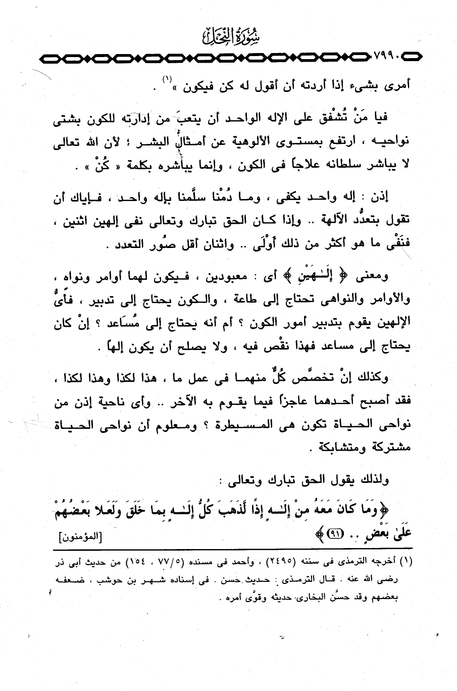 فيا مَنْ تُشفْق على الإله الواحد أن يتعبَ من إدارته للكون بشتى نواحيه، ارتفع بمستوى الألوهية عن أمثال البشر؛ لأن الله تعالى لا يباشر سلطانه علاجاً في الكون، وإنما يباشره بكلمة «كُنْ» .