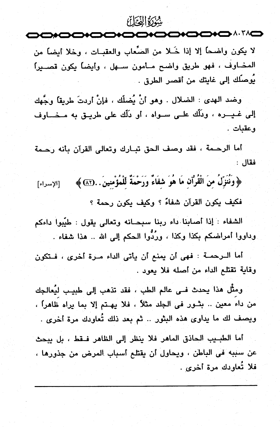 الشفاء: إذا أصابنا داء ربنا سبحانه وتعالى يقول: طيّبوا داءكم وداووا أمراضكم بكذا وكذا، ورُدُّوا الحكم إلى الله. . هذا شفاء.