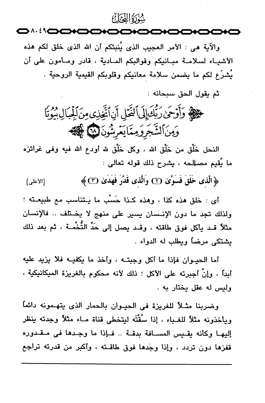 النحل خَلْق من خَلْق الله، وكل خَلْق لله أودع الله فيه وفي غرائزه ما يُقيم مصالحه، يشرح ذلك قوله تعالى: {الذي خَلَقَ فسوى والذي قَدَّرَ فهدى} [الأعلى: 2 - 3] .