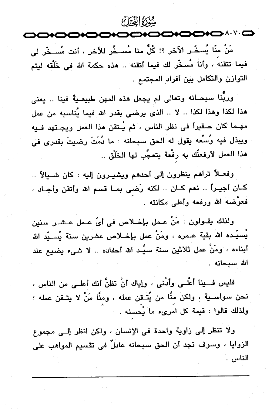ولذلك يقولون: مَنْ عمل بإخلاص في أيّ عمل عشر سنين يُسيّده الله بقية عمره، ومَنْ عمل بإخلاص عشرين سنة يُسيّد الله أبناءه، ومَنْ عمل ثلاثين سنة سيَّد الله أحفاده. . لا شيء يضيع عند الله سبحانه.