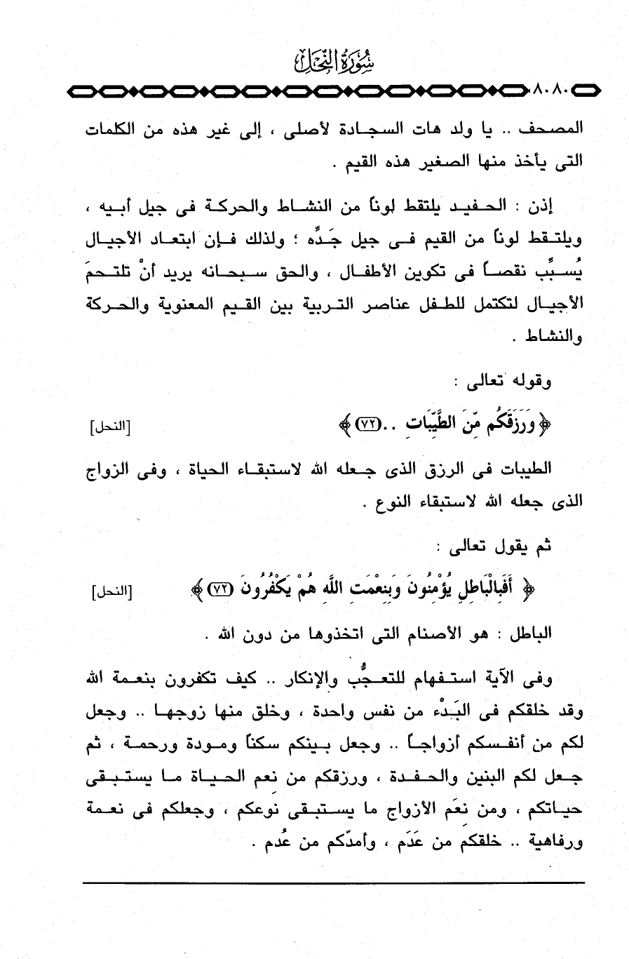 المصحف. . يا ولد هات السجادة لأصلي، إلى غير هذه من الكلمات التي يأخذ منها الصغير هذه القيم.