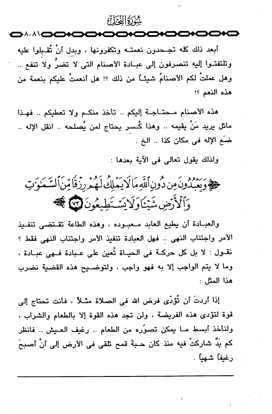 هذه الأصنام محتاجة إليكم. . تأخذ منكم ولا تعطيكم. . فهذا مائل يريد مَنْ يقيمه. . وهذا كُسِر يحتاج لمن يُصلحه. . انقل الإله. . ضَع الإله في مكان كذا. . الخ.