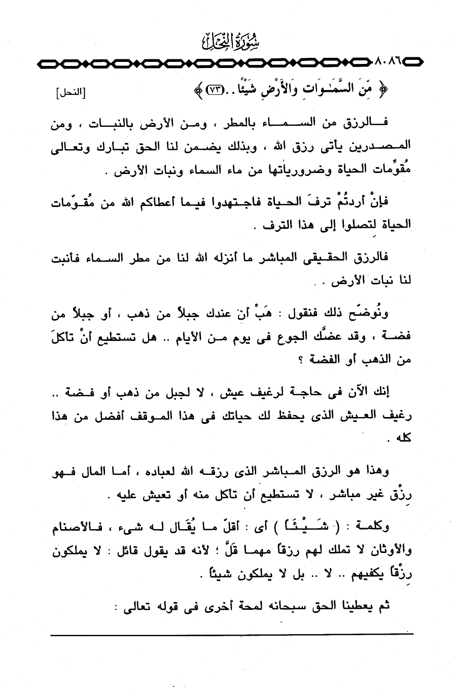 وهذا هو الرزق المباشر الذي رزقه الله لعباده، أما المال فهو رِزْق غير مباشر، لا تستطيع أن تأكل منه أو تعيش عليه.