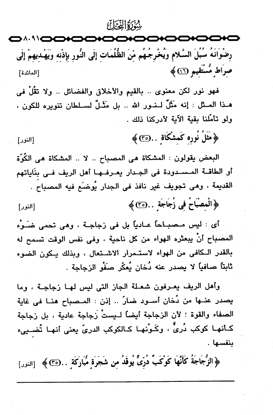 فهو نور لكن معنوي. . بالقيم والأخلاق والفضائل. . ولا تقُلْ في هذا المثل: إنه مَثَلٌ لنور الله. . بل مَثَلٌ لسلطان تنويره للكون، ولو تأمَّلنا بقية الآية لأدركنا ذلك.