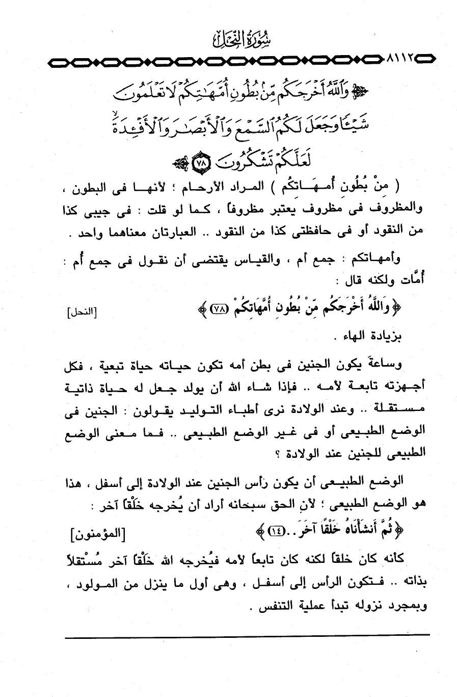 (مِنْ بُطُونِ أُمهَاتِكُم) المراد الأرحام؛ لأنها في البطون، والمظروف في مظروف يعتبر مظروفاً، كما لو قلت: في جيبي كذا من النقود أو في حافظتي كذا من النقود. . العبارتان معناهما واحد.