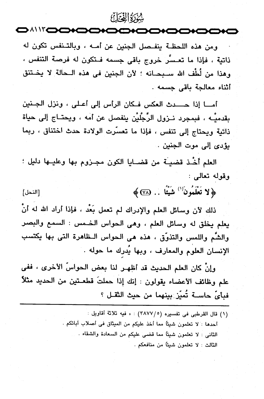 ذلك لأن وسائل العلم والإدراك لم تعمل بَعْد، فإذا أراد الله له أنْ يعلم يخلق له وسائل العلم، وهي الحواس الخمس: السمع والبصر والشَّم واللمس والتذوّق، هذه هي الحواس الظاهرة التي بها يكتسب الإنسان العلوم والمعارف، وبها يُدرِك ما حوله.