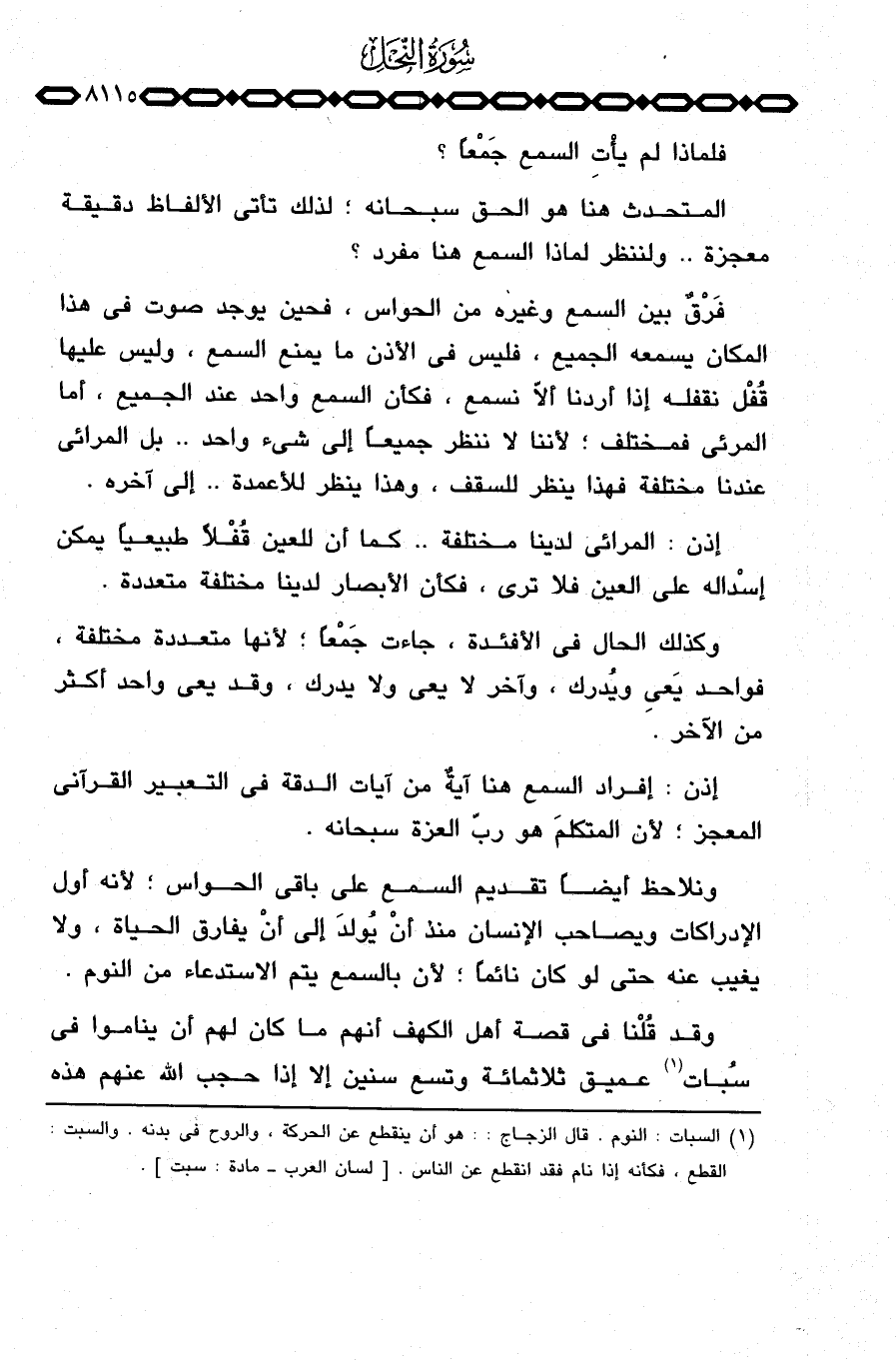 المتحدث هنا هو الحق سبحانه؛ لذلك تأتي الألفاظ دقيقة معجزة. . ولننظر لماذا السمع هنا مفرد؟