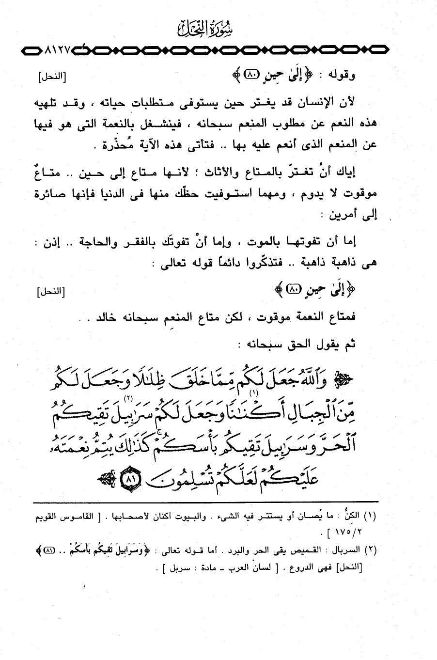 وقوله: {إلى حِينٍ} [النحل: 80] .