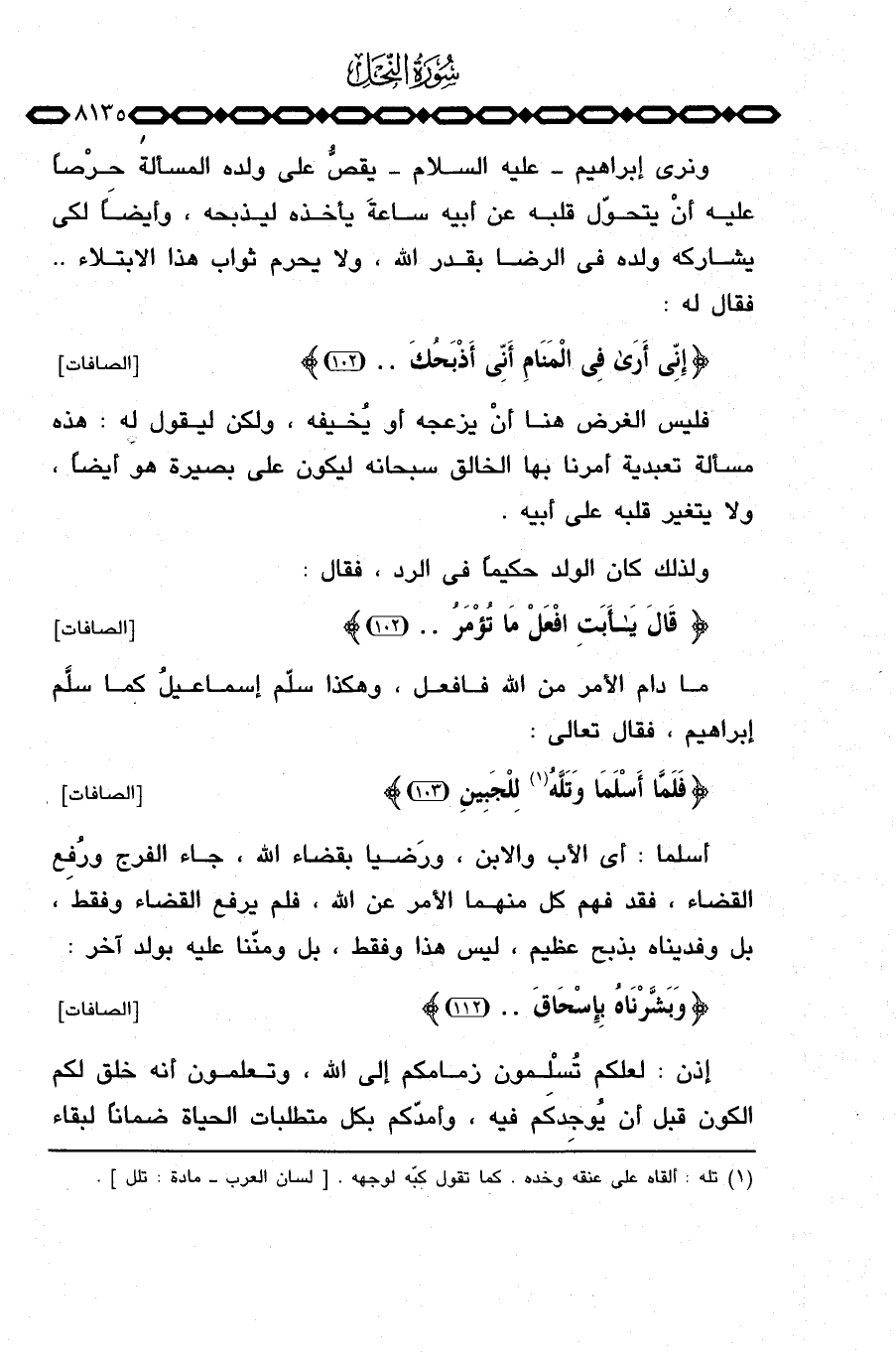 ما دام الأمر من الله فافعل، وهكذا سلّم إسماعيلُ كما سلَّم إبراهيم، فقال تعالى: {فَلَمَّا أَسْلَمَا وَتَلَّهُ لِلْجَبِينِ} [الصافات: 103] .