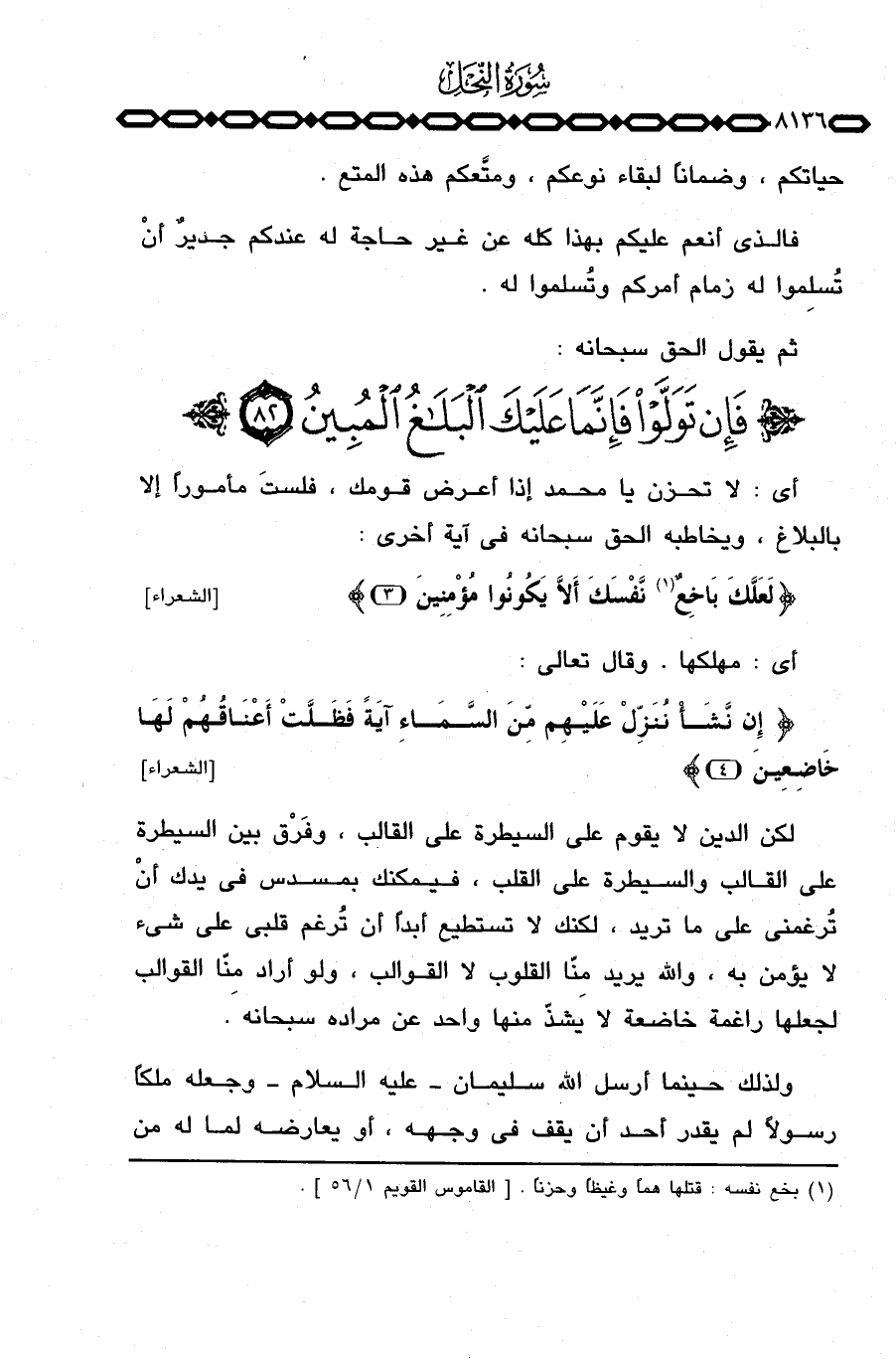 لكن الدين لا يقوم على السيطرة على القالب، وفَرْق بين السيطرة على القالب والسيطرة على القلب، فيمكنك بمسدس في يدك أنْ تُرغمني على ما تريد، لكنك لا تستطيع أبداً أن تُرغم قلبي على شيء لا يؤمن به، والله يريد مِنّا القلوب لا القوالب، ولو أراد مِنّا القوالب لجعلها راغمة خاضعة لا يشذّ منها واحد عن مراده سبحانه.