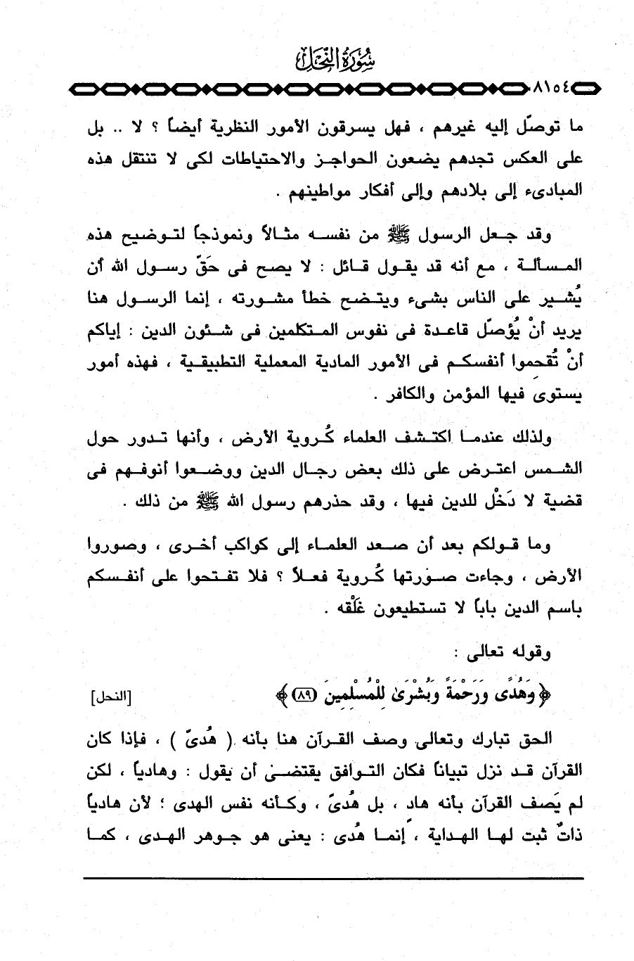 ولذلك عندما اكتشف العلماء كُروية الأرض، وأنها تدور حول الشمس اعترض على ذلك بعض رجال الدين ووضعوا أنوفهم في قضية لا دَخْل للدين فيها، وقد حذرهم رسول الله صَلَّى اللَّهُ عَلَيْهِ وَسَلَّم َ من ذلك.