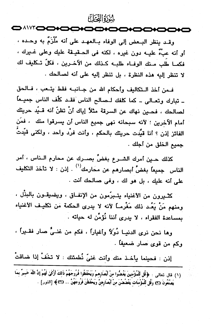 كذلك حين أمرك الشرع بغضِّ بصرك على محارم الناس، أمر الناس جميعاً بغضِّ أبصارهم عن محارمك. إذن: لا تأخذ التكليف على أنه عليك، بل هو لك، وفي صالحك أنت.