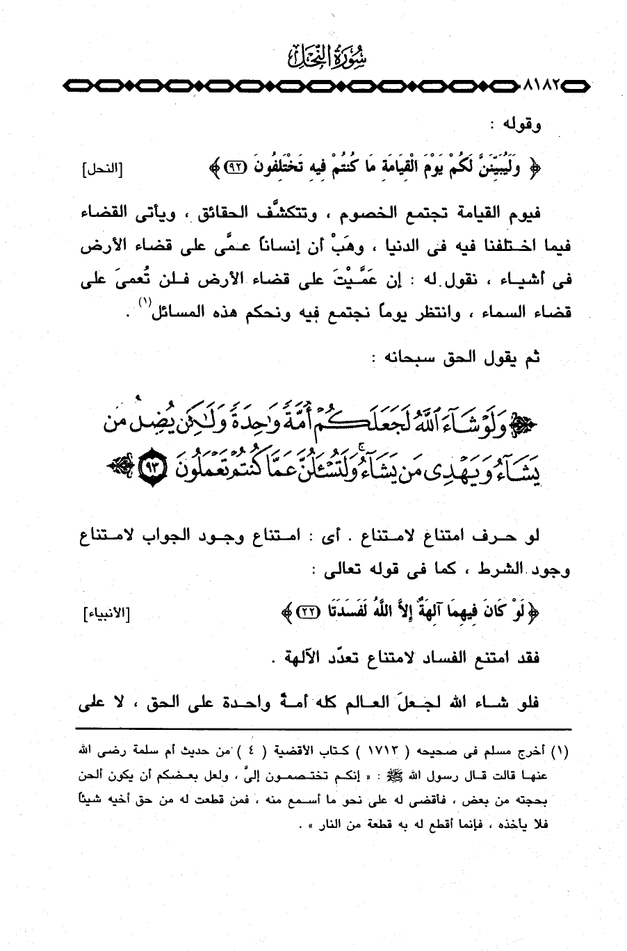 {وَلَيُبَيِّنَنَّ لَكُمْ يَوْمَ القيامة مَا كُنْتُمْ فِيهِ تَخْتَلِفُونَ} [النحل: 92] .
