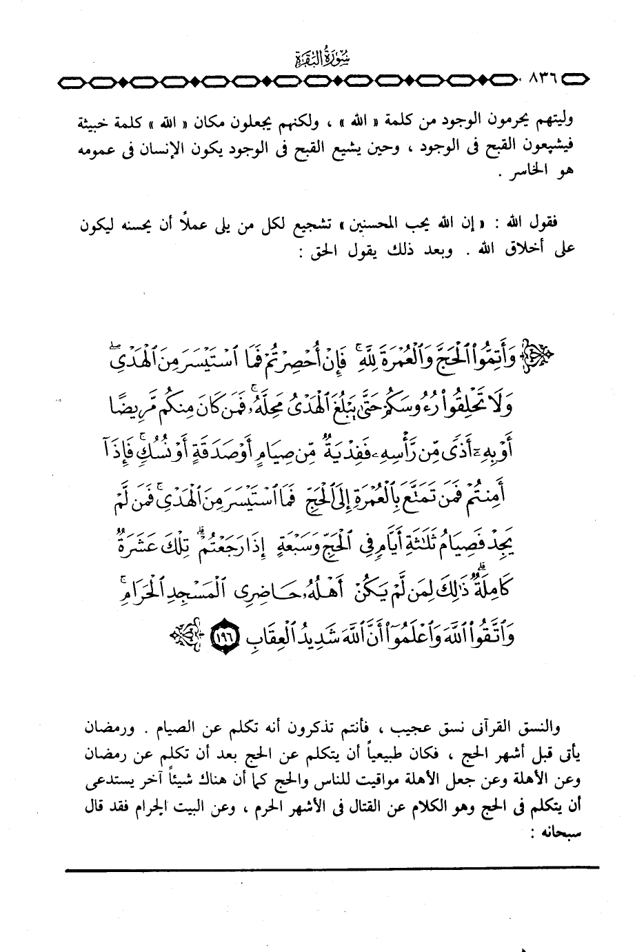 والنسق القرآني نسق عجيب، فأنتم تذكرون أنه تكلم عن الصيام. ورمضان يأتي قبل أشهر الحج، فكان طبيعياً أن يتكلم عن الحج بعد أن تكلم عن رمضان وعن الأهلة وعن جعل الأهلة مواقيت للناس والحج كما أن هناك شيئاً آخر يستدعي أن يتكلم في الحج وهو الكلام عن القتال في الأشهر الحرم، وعن البيت الحرام فقد قال سبحانه: