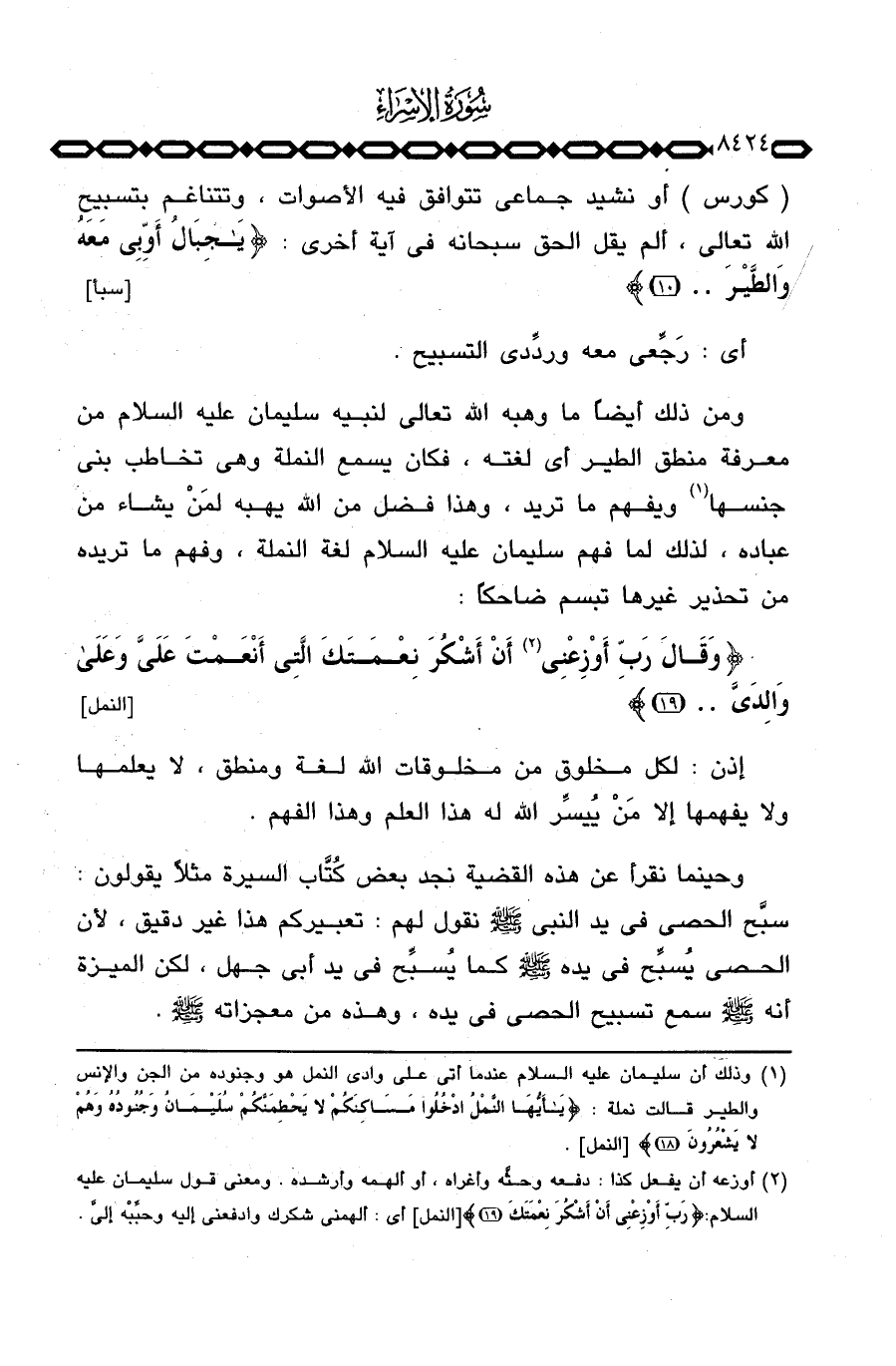 ومن ذلك أيضاً ما وهبه الله تعالى لنبيه سليمان عليه السلام من معرفة منطق الطير أي لغته، فكان يسمع النملة وهي تخاطب بني جنسها ويفهم ما تريد، وهذا فضل من الله يهبه لمَنْ يشاء من عباده، لذلك لما فهم سليمان عليه السلام لغة النملة، وفهم ما تريده من تحذير غيرها تبسم ضاحكاً: {وَقَالَ رَبِّ أوزعني أَنْ أَشْكُرَ نِعْمَتَكَ التي أَنْعَمْتَ عَلَيَّ وعلى وَالِدَيَّ. .} [النمل: 19]