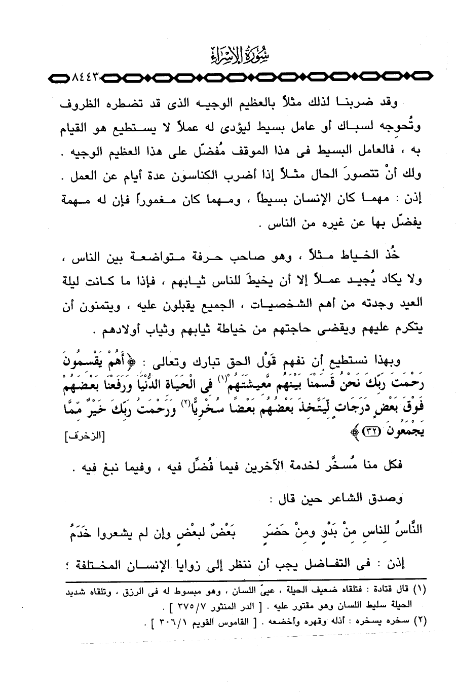 فكل منا مُسخَّر لخدمة الآخرين فيما فُضِّل فيه، وفيما نبغ فيه.