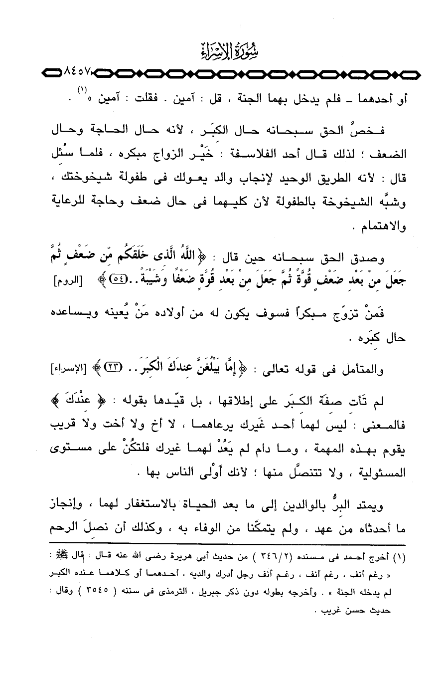 والمتأمل في قوله تعالى: {إِمَّا يَبْلُغَنَّ عِندَكَ الكبر. .} [الإسراء: 23]