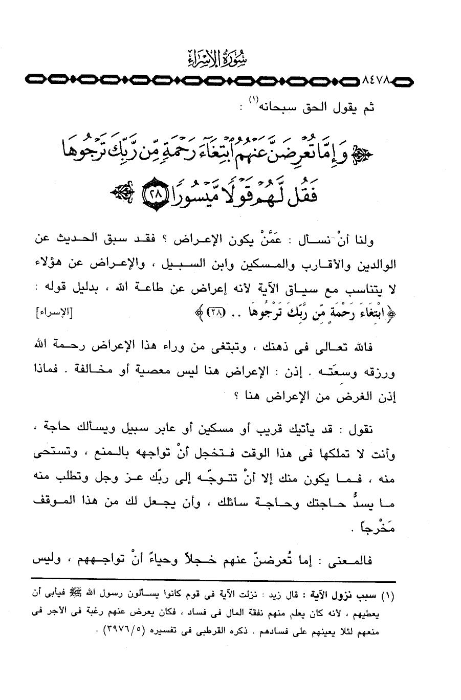 ولنا أنْ نسأل: عَمَّنْ يكون الإعراض؟ فقد سبق الحديث عن الوالدين والأقارب والمسكين وابن السبيل، والإعراض عن هؤلاء لا يتناسب مع سياق الآية لأنه إعراض عن طاعة الله، بدليل قوله: {ابتغآء رَحْمَةٍ مِّن رَّبِّكَ تَرْجُوهَا. .} [الإسراء: 28]